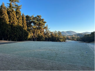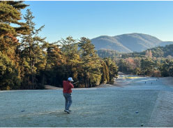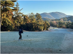当然、朝一はフェアーウェイには霜が降り、手はかじかむ。