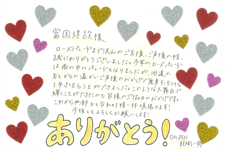 箕面自由学園高等学校『GOLDEN BEARS』ローズパレード参加支援のご報告